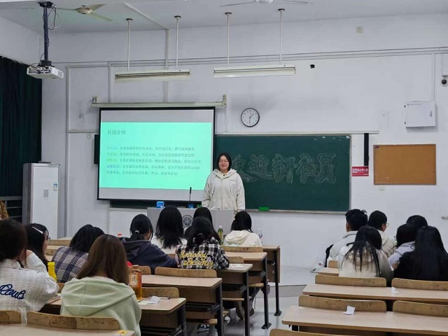 随后,社团现任社长徐湘铭向新社员们详细介绍了社团宗旨、部门职责、品牌活动与激励机制。从“经济讲座”到“学术沙龙”,再到“比赛活动”,丰富多彩的活动体系极大地激发了新社员们的兴趣与期待。