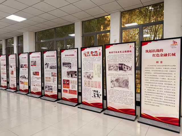 在纪念抗日战争暨世界反法西斯战争胜利80周年之际,为深入学习贯彻二十届四中全会精神,传承红色金融基因,11月11日,金融与经济学院第一学生党支部在B东大厅开展“行走的思政课”系列活动,集体参观“筑起抗战的红色金融长城”主题展览。支部全体师生党员在历史的回望中,感悟金融背后的精神力量,坚定“金融为民”的初心使命。