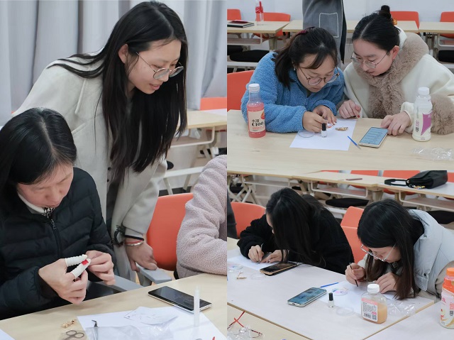 活动的最后,一场“非遗点翠,指间疗愈”手工体验,让老师们在传统文化的浸润中感受专注的力量。当一件件色彩绚丽、独具匠心的点翠作品逐渐成型时,老师们脸上满是成就感——在感受非遗文化魅力的同时,也通过沉浸式创作,体验到了“心流”带来的专注与满足,实现了心灵的深度疗愈。