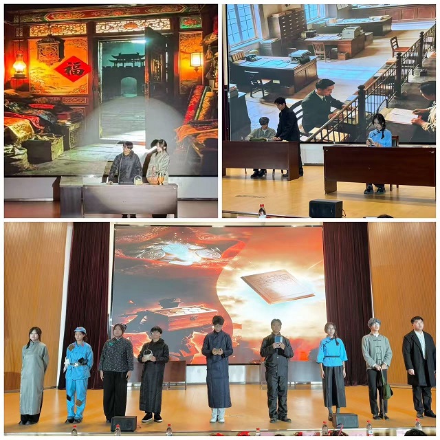 由学院学生自编自演的话剧《红色金融映初心》将现场气氛推向高潮。作品以中国共产党百年奋斗历程为背景,通过“建党”“工人运动”等历史片段,生动呈现了党领导下金融事业发展的初心与使命。演出情感真挚、构思巧妙,在专业教育与课程思政融合方面作出了创新示范,赢得全场热烈共鸣。