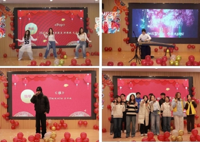 文艺表演环节率先登场,将活动氛围迅速推向高潮。动感舞蹈《Is this love》活力开跳,瞬间点燃全场;古筝独奏《春风十里报新年》旋律悠扬,尽显古韵雅致;独唱《谁》深情婉转,直抵人心;合唱《我的未来式》朝气蓬勃,唱响青春憧憬;《不完美小孩》温柔治愈,传递温暖力量;舞蹈《POP》节奏轻快,再度引爆现场。精彩节目轮番上演,台下掌声、欢呼声不绝于耳。