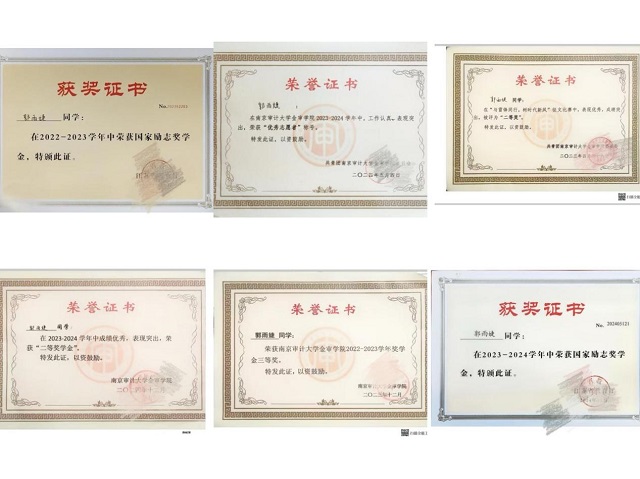 郭雨婕,共青团员,南京审计大学金审学院2022级金融实验班学子,现任班级宣传委员,曾任学院学习部干事。自踏入大学校园的那一刻起,她便将“勤奋”与“担当”深植于心,作为成长路上的坚定信条。在校期间,她凭借不懈努力斩获诸多荣誉,先后荣获“国家励志奖学金”“优秀志愿者”“优秀团员”及校一、二、三等奖学金等称号,更以扎实的行动力顺利通过大学英语四级、六级、全国计算机二级、初级会计及普通话二级等多项技能考试,在青春赛道上交出了一份亮眼的成长答卷。