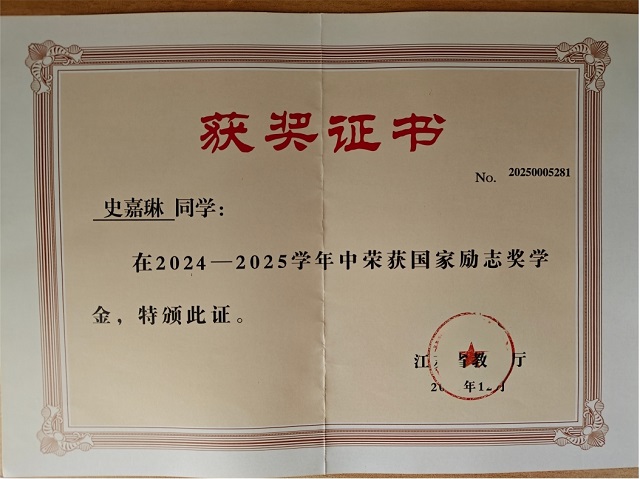 史嘉琳,金融与经济学院24级金融与经济学院国贸1班,目前绩点与综测排专业前三,获得校级一等奖学金,国家励志奖学金。目前已经获得大学生英语四级证书,暑期社会实践优秀团队等荣誉。作为大二学生,从图书馆的书桌到田间的大棚,从志愿岗位的服务台到红色调研的征途,她始终以“把每件事做扎实”的劲头,在学业、实践、公益的赛道上步履不停,让青春在扎根日常的坚持中愈发鲜活。
