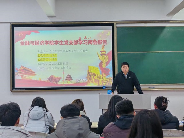 为深入学习贯彻2026年全国两会精神,切实把青年党员的思想与行动统一到党中央决策部署上来,3月11日,金融与经济学院学生党支部召开专题学习会议,通过集中观看两会会议视频的形式,深入学习领会全国两会精神。会议由学生第二党支部书记叶城洁老师主持,学生第一党支部书记吴金洋及各支部党员参会。
