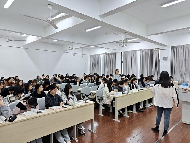 2026年4月9日,金融与经济学院国际经济与贸易系陈瑶老师在C中402教室主讲的《宏观经济学》公开课如期举行。本次课程以“宏观经济的基本指标及其衡量”为讲授内容,全校30余名教师参与观摩。
