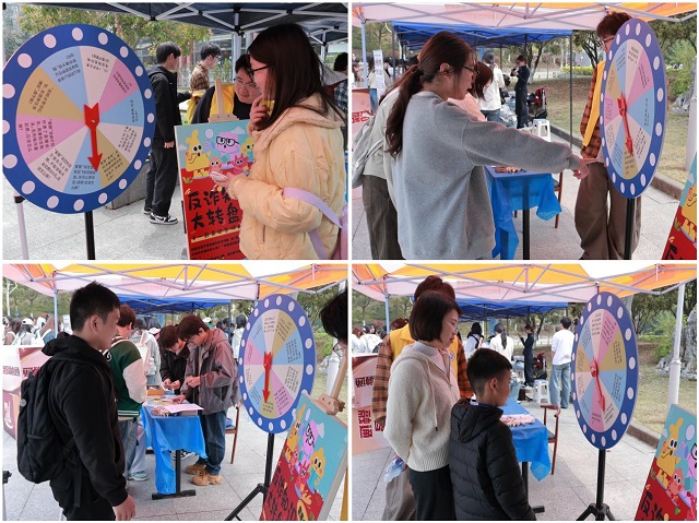 “反诈知识大转盘” 作为反诈宣传核心环节,转盘标注不同难度反诈题目,覆盖校园高频诈骗场景。参与者转动转盘答题,工作人员现场引导讲解,答对即可参与抽奖,让反诈知识入脑入心,切实提升防范技能。