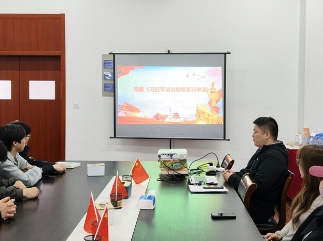 交流研讨悟原理,凝聚思想共识。观看结束后,党员们结合学习与生活开展交流研讨,分享感悟体会。大家一致表示,通过系列讲读对法治中国建设有了更深刻理解,进一步坚定走中国特色社会主义法治道路的信念,切实把学习成果转化为尊崇法治、遵守法律的思想自觉。