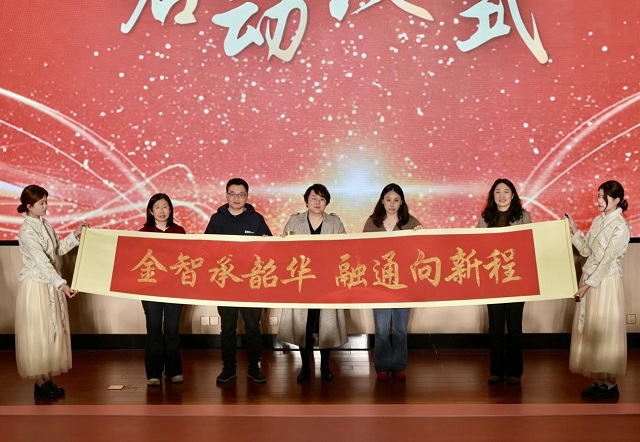 活动高潮环节,孟琪璐校长助理、高国生院长、刘颖副处长、王立峰副书记、吴萍副院长共同上台,为“金智融通”文化节展卷轴、启新程。随着卷轴徐徐展开,“金智承韶华,融通向新程”的主题标语呈现在全场师生面前,标志着文化节正式开幕。以通达贯通为人才培养之果,助力学子博学笃行、融通致远,走向更广阔的未来。